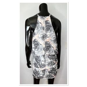 Ali & Jay VIP Only Charcoal Grey Blush Rose Floral Print Dress Sz S Polyester