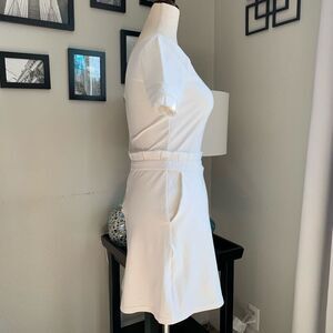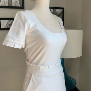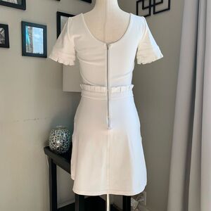 Beautiful white summer dress! Fitted scoop neck, ruffled details, zipper back and bonus pockets!