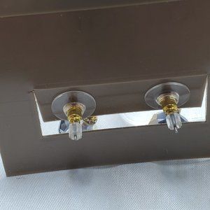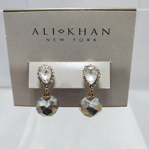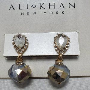 Ali Khan Hematite faceted glass bead with gold and rhinestone pierced earring