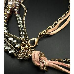Ali Khan New York Pink, Purple and Grey Crystal Beaded Necklace. 18" long. In good pre-owned condition