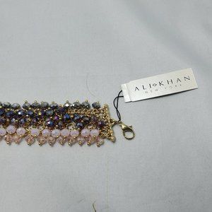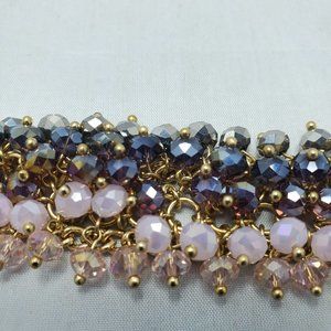 Ali Khan beaded bracelet with gold links. color amethyst-lilac-hematite beads