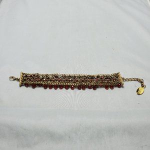 Ali Khan beaded bracelet with gold links. color topaz garnet ruby beads