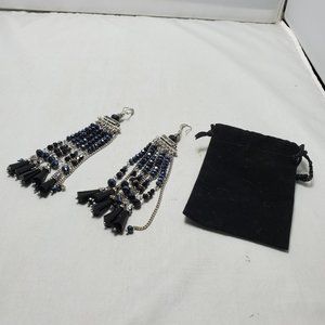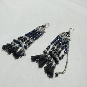 Ali Khan black gunmetal ripple long fringe glass bead earring
