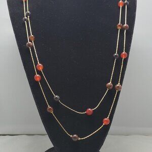 Ali Khan carnelian stone multi color beaded necklace with gold chain