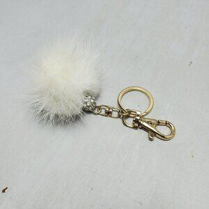 Ali Khan faux fur Pom Pom gold key chain with rhinestones and gift box