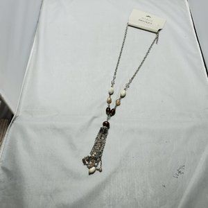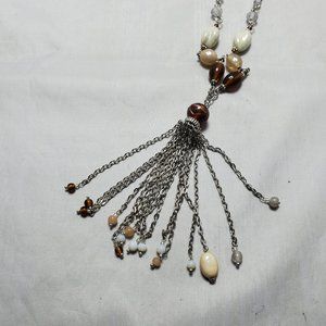 Ali Khan natural color stone with silver chain tassel necklace