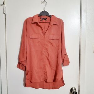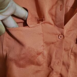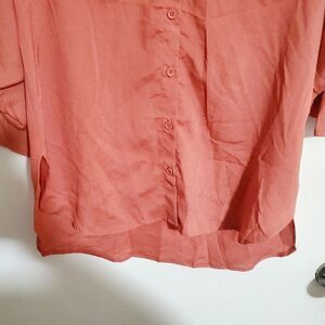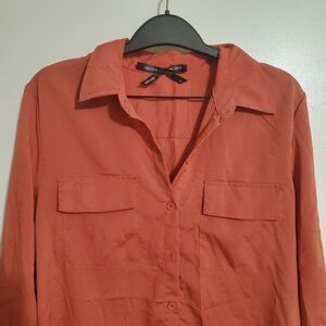 Beautiful orange brick color top. Functional pockets. Button closure. Pre-owned in great condition. Please refer to pictures for best description and condition verification.