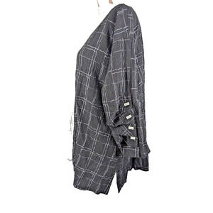 Ali Miles 1X Crinkle Tunic Top Blouse Black White Plaid Button Detail Lagenlook