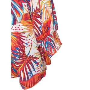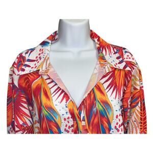Ali Miles 2X Top Orange Blue Colorful Tropical Floral Collar Pullover Smock Cuff