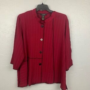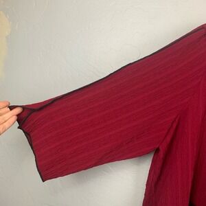 Ali Miles 3/4 Sleeve Tunic Top Size 2x Red Button Front Blouse Artsy Flowy