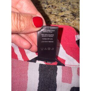 Ali Miles Abstract Button Front Tunic Top S Red/Black/White Travel Casual Artsy