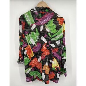 Ali Miles Abstract Print Button Colorful Roll Tab Wearable Art Tunic Size Small