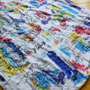 Ali Miles Art Wear Stretch Knit Button Up Shirt Short Sleeve City Print Size 1X