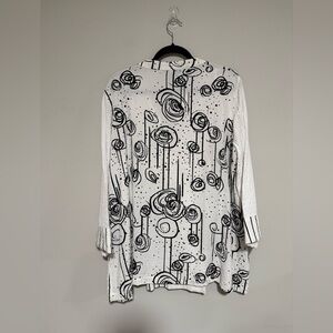 Ali Miles Black and White Abstract Topper Jacket Size 1X Wearable Art Light