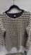 Elegant blouse with a bold houndstooth pattern. Features flared sleeves for added style. Used in wonderful condition!