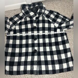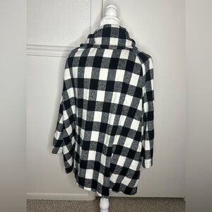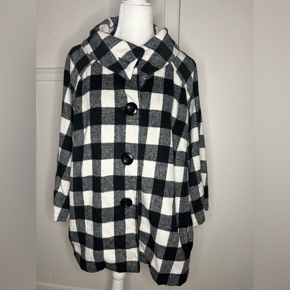 Excellent condition Ali Miles cape features a bold black and white plaid pattern, offering a chic and versatile addition to your outerwear collection. Its classic design effortlessly elevates any outfit, providing both style and comfort. Perfect for layering, this cape is a must-have for any fashion-forward wardrobe.
