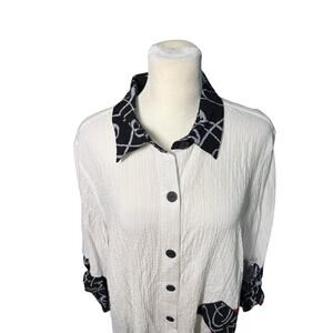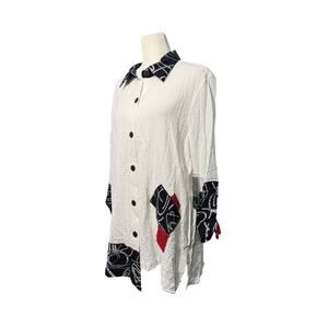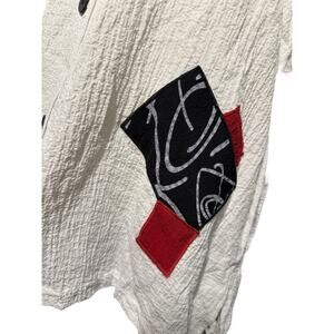 Ali Miles Blouse Women Large White Artsy Funky 80s Crinkle Lagenlook Flowy New