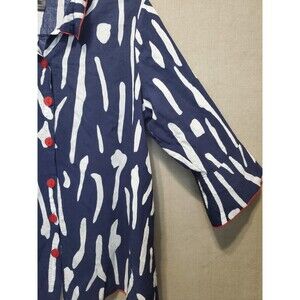 Ali Miles Blue Abstract Red Button Accent 3/4 Sleeve Button-Up Tunic Size XL