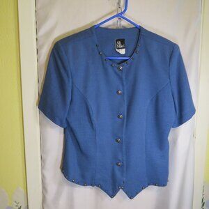 Ali Miles Blue Short Sleeve w Metal Studded buttons & Hem Jacket/Blazer fitted