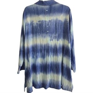 Ali Miles Blue Tie Dye Button Front Blouse Large Buttons On Back Lagenlook