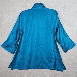 Ali Miles Button Up Shirt Small Blouse Modern Classic Timeless Blue Preppy