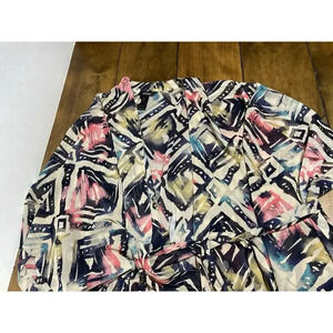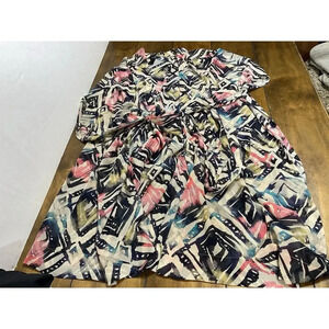 Made from a blend of polyester and spandex, this sweater is machine washable and easy to care for. The knit style is uniform, with no special patterns or designs. The size is 2X, and the garment is designed for plus-size women. With its vibrant multicolor design and tropical theme, this cardigan duster is sure to make you stand out from the crowd.pre owned good condition does not have sleeves is open on the sides has a belt that loops to make it like a kimono very nice the pictures don’t do it justice measurements are in the pictures