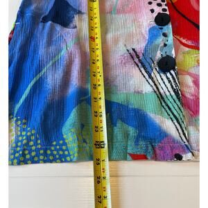 Ali Miles Colorful Abstract Print Artsy Top Pockets Button Front 3/4 Bell Sleeve