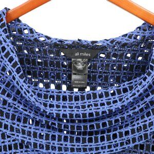 Ali Miles Cowl Neck Blue Black Layered Mesh 3/4 Sleeve Tunic Top XL