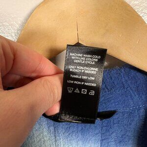 Ali Miles Crinkle Tunic Button Up Top Size Large Blue Tie Dye Artsy Art to Wear