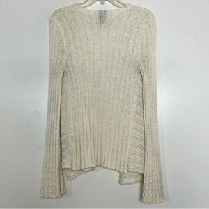 Ali Miles Crochet Open Front Cardigan Sweater Cable Ribbed Knit Cream Size Small