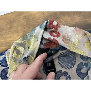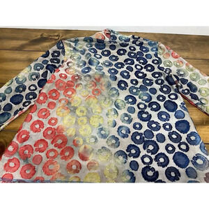 This blouse is made of a lightweight and breathable knit fabric, consisting of polyester, spandex, and rayon. It is machine washable and suitable for all seasons. The relaxed fit and casual sleeve type add to the bohemian vibe, making it a perfect addition to your wardrobe. Whether you're attending a wedding, a party, or just going to work, this top is sure to make you stand out.pre owned good condition we ship fast measurements are in the pictures