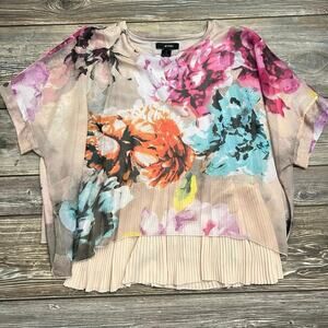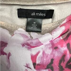 Ali Miles Floral Blouse Top Women’s Sz M Multicolored Semi Sheer Pleated tank.