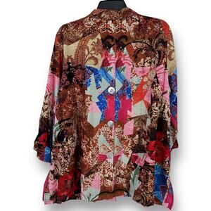 Ali Miles Floral Mixed Media Oyster Button Wire Collar Shirt Plus Size 1X