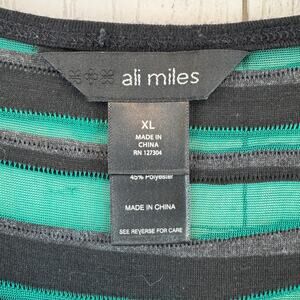 Ali Miles Green Black Woven Striped Textured Mesh Long Sleeve Tunic Top Size XL