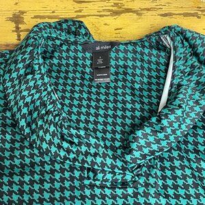 Ali Miles Houndstooth Stretch Top Blouse Collar Oversized Green Sz SM