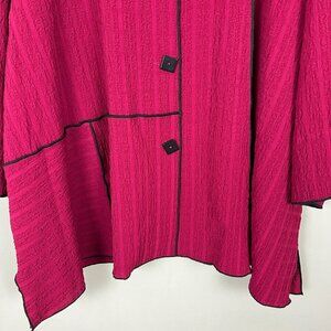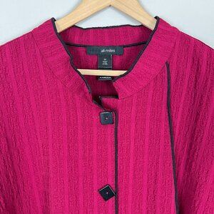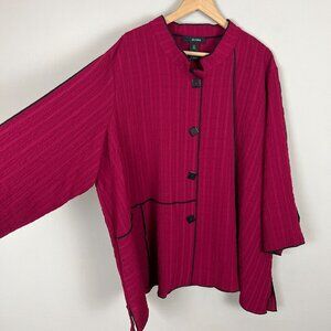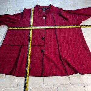Ali Miles Jacket Womens Plus 3X Maroon Black Button Up Lagenlook Textured Artsy