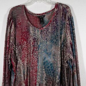 Ali Miles Knit Tunic Top Women's Plus Size 2X Multicolor Loose Fit Burnout