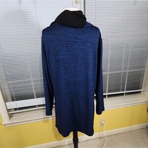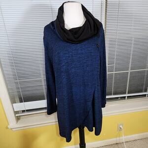 Ali Miles Large $84 Blue Black Heather Cowl Neck Wrap Asymmetric Tunic Knit Top