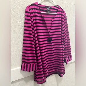 Ali Miles Magenta and Black Mesh Single Button Light Jacket XL