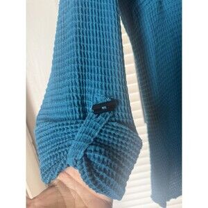 Ali Miles Medium Tunic Cowl Neck Blue Button Details Waffle Taupe Top