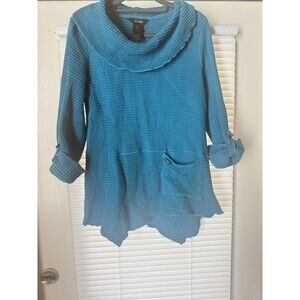 This cowl neck top features a pullover closure, asymmetric hem, pockets, and a relaxed fit in a thermal and waffle fabric. With a 3/4 sleeve length and a solid pattern, this tunic is easy to care for with machine washable instructions. Ideal for the winter, fall, and spring seasons, this top by Ali Miles offers comfort and style for the modern woman looking for a bohemian-inspired wardrobe piece.