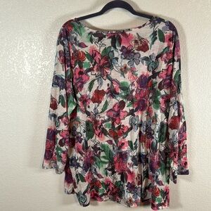Ali Miles Multi Color Sketch Floral Side Tie 3/4 Sleeved Tee Size 2X