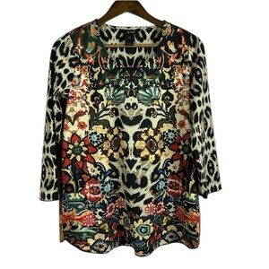 Ali Miles Multicolor Tunic Animal Print Floral Patterned Women's Shirt Small
