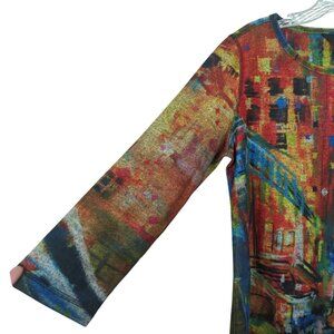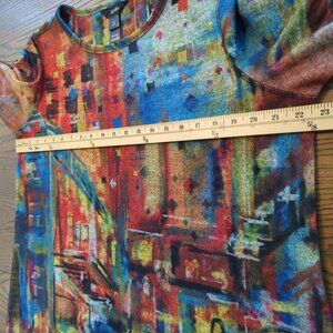 Ali Miles Multicolor Tunic Women’s size L Brushed Abstract Art Print Long Sleeve