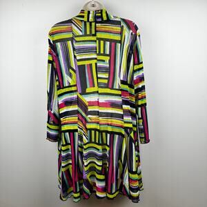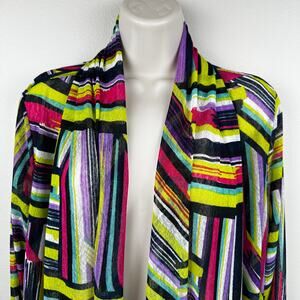 Ali Miles Open Cardigan Striped Geometric Art to Wear Semi Sheer Multi Color 1X Artsy