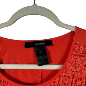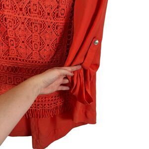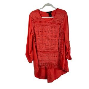 Ali Miles Orange Long Sleeve Crochet Blouse Boho Roll Tab Womens Plus Size 1x
