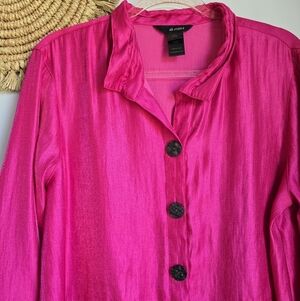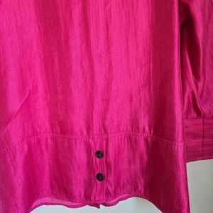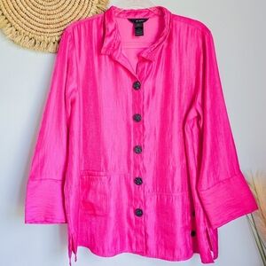Ali Miles, Pink Woven Shimmer Stand Collar Button Front Pocket Tunic SZ Large