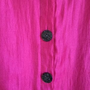 Button Details on Front and Back. Pink Solid Woven Shimmer Fabrication.