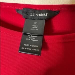 Pre-loved Ali Miles Plus 1X Red Jersey Floral Embroidered Sheer Bell Sleeve Blouse.