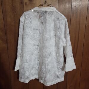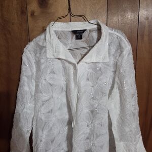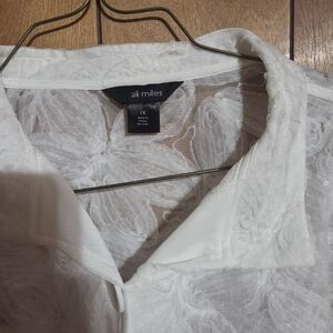 Ali Miles Plus Size 1x White Floral Beaded Buttom Down Blouse